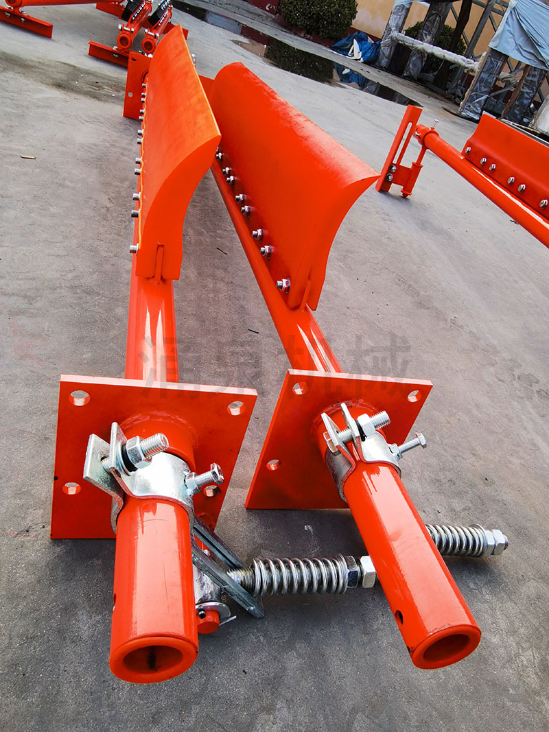2.1 H型聚氨酯清掃器為頭道清掃器,安裝在帶式輸送機頭部滾筒中心線(xiàn)偏下位置。