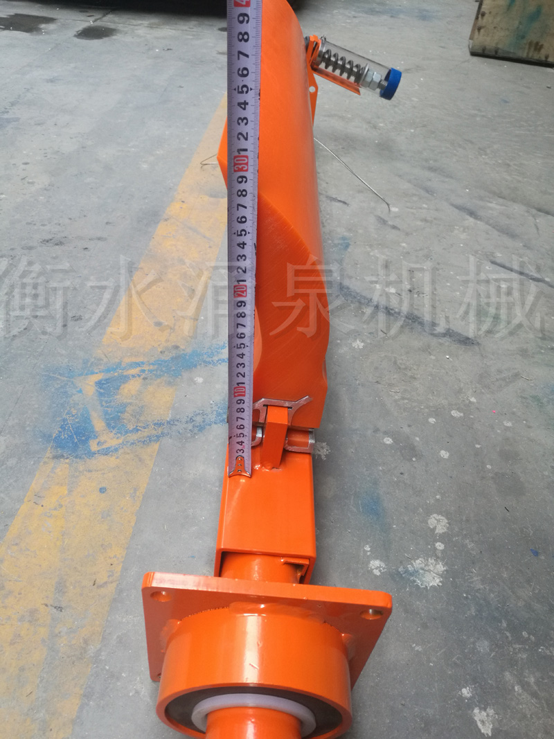 我公司設計的 HPU 系列清掃器為頭道清掃器,安裝在帶式輸送機頭部滾筒,清掃器安裝寬度可根據現場(chǎng)情況任意伸縮。刀片材質(zhì)為聚氨酯,具有耐磨損、抗腐蝕、不損傷皮帶、清掃干凈等優(yōu)點(diǎn),其特別的張緊裝置,設計合理,使用方便,可以在不停機的情況下將刀片和皮帶分離,以利于清掃刀口上的雜物。該系列清掃器安裝簡(jiǎn)單,維護方便,深受用戶(hù)青睞。