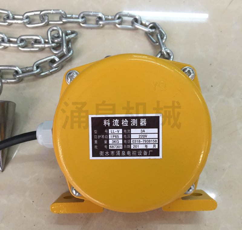 LL-I型料流檢測裝置采用下垂鏈球(或采用拍板式)與物料接觸的檢測方式。當膠帶運送物料時(shí),物料推動(dòng)球并帶擺臂向一側偏移,若偏移角度大于20°時(shí),內部開(kāi)關(guān)啟動(dòng),輸出一組開(kāi)關(guān)信號。