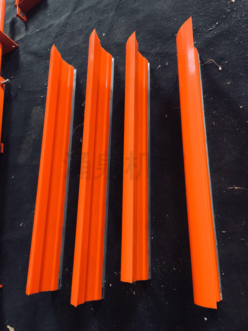刮刀采用聚氨脂復合材料,利用模具一體加硫成形,刮刀面平整,直線(xiàn)度好,低摩擦、高耐磨、高強度,具有穩定的刮料效果?捎行宄龤埩羝现毩、濕粘物料。預壓式調壓器確保刮刀與皮帶的穩定接觸壓力。刮刀面由多塊窄幅聚氨脂刮板組成,具有空形緩沖孔,對各種皮帶都有良好跟隨性。聚氨酯刮刀