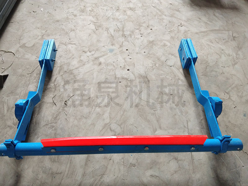1:結構合理。本清掃器由刮刀部分,支撐部分,重錘部分組成。具有耐磨性好,使用壽命長(cháng),減少維修量等特點(diǎn)。輸送帶面有破裂處或有清掃不下來(lái)的異物時(shí)彈性體可起到緩沖作用,讓異物通過(guò),從而保護膠帶。支撐部分使刮板處于最佳清掃角度,杠桿可以擺動(dòng),使刀片(或刮板)與清掃的膠帶緊密貼合,并可通過(guò)改變重錘塊在杠桿上的相對位置來(lái)改變清掃器的工作壓力。