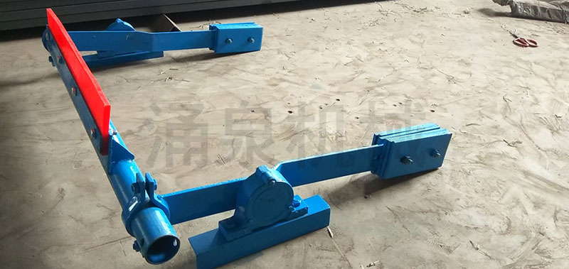 7試運行調整重錘塊在杠桿上的位置,確定使刮板與膠帶面的接觸工作力為50~100N之間,清掃效果為最佳。